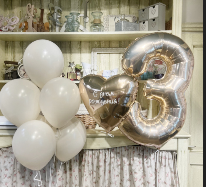 Цвет шаров любой и цифра любая, сердце можно заменить на другую форму.